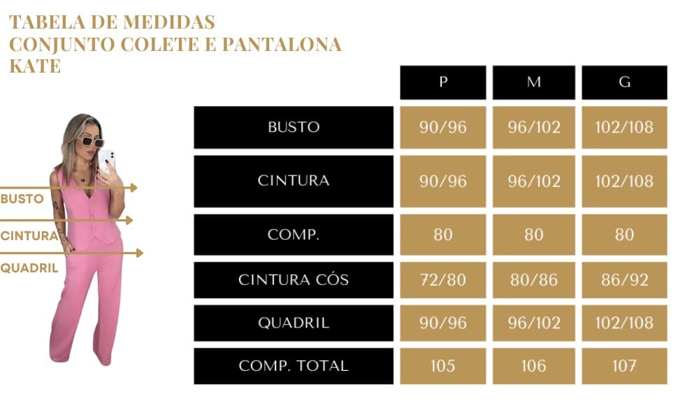 O Conjunto Colete e Pantalona é composto por colete e maxi pantalona, sendo o mais moderno da estação. Fácil de usar, permite criar looks incríveis com criatividade. Combina modernidade, conforto e elegância. Vista bem, use Map.