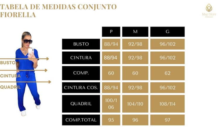 Conjunto Fiorella: elegância e conforto com blusa de gola V transpassada e calça fluída ajustável. Vista-se bem, use Map.