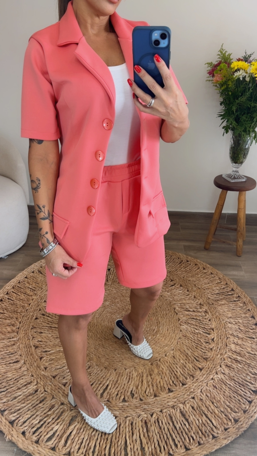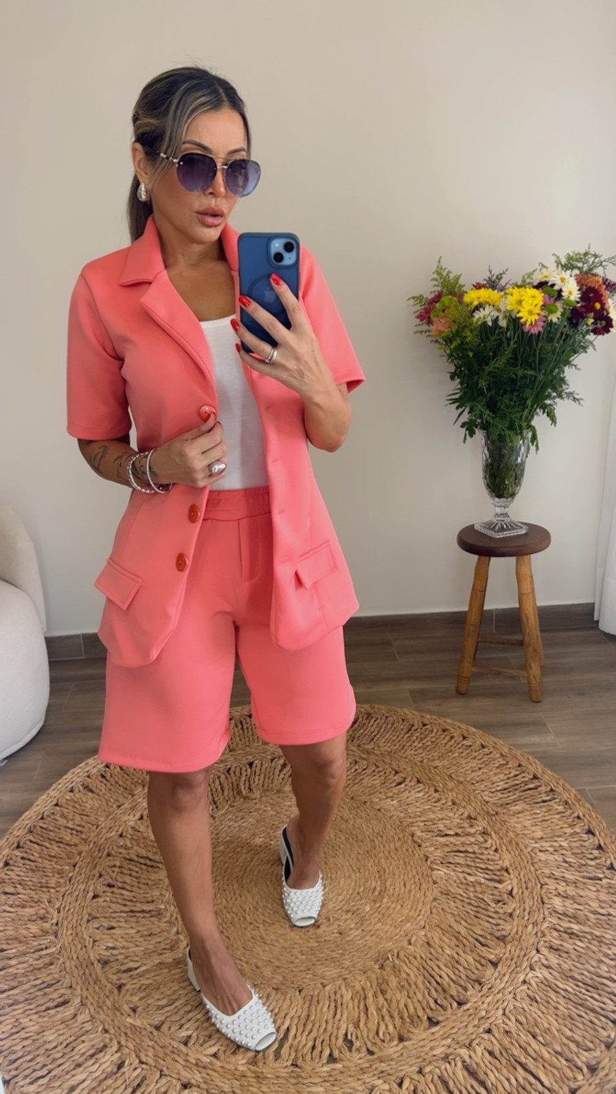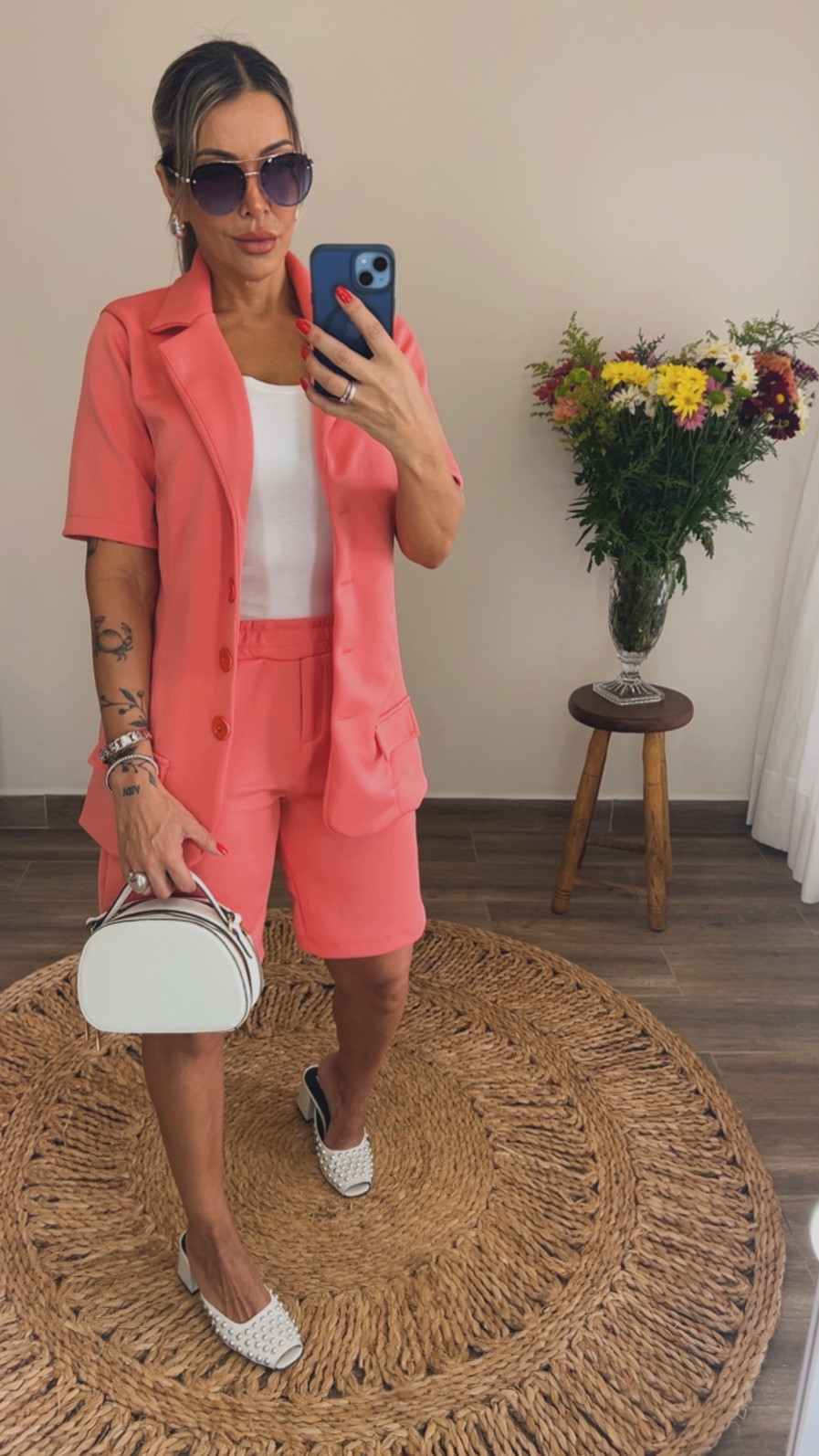 Conjunto Bermuda Jorts + Blazer em Neoprene & Regata em Viscolycra — Sofisticação que Abraça o Corpo