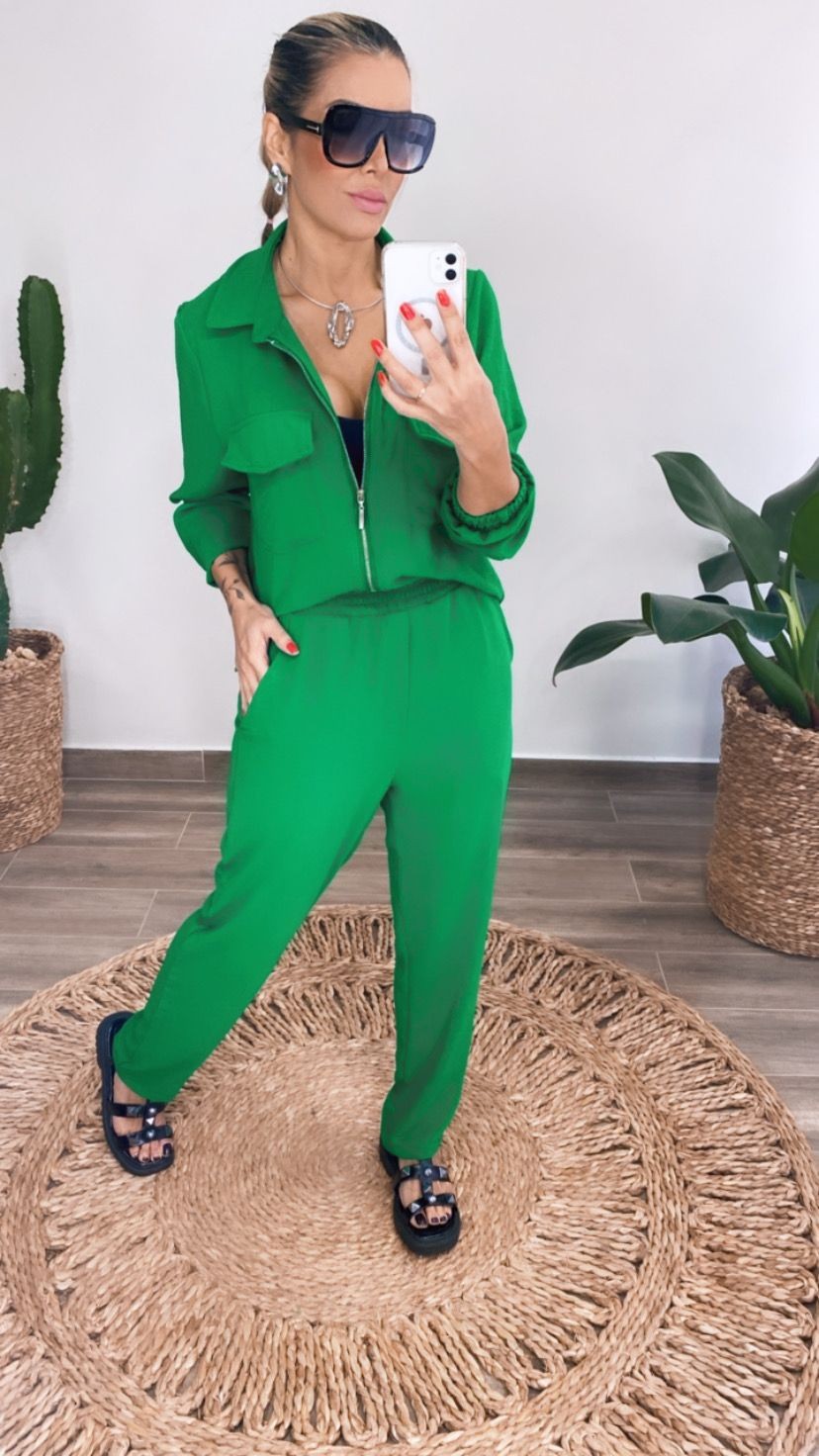 Conjunto composto por bomber com zíper e calça de alfaiataria estilo cenoura, ideal para criar looks modernos e elegantes, podendo ser usado junto ou separado. A bomber tem modelagem quadrada, punhos com elástico e bolsos funcionais, enquanto a calça possui recorte alfaiataria, forro com elastano e bolsos.