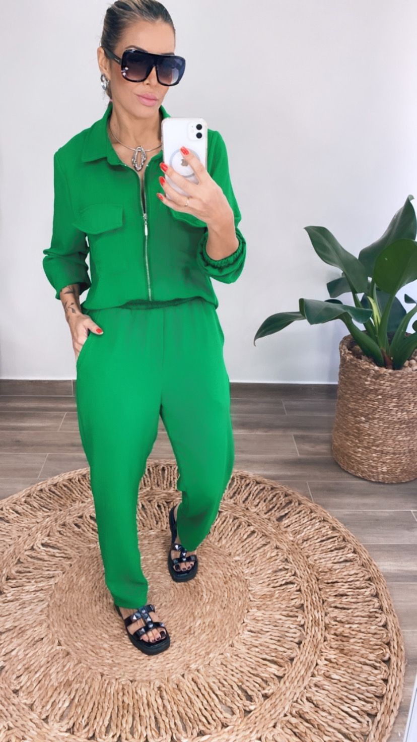O conjunto é composto por uma bomber com zíper e uma calça de alfaiataria com recorte estilo cenoura, oferecendo versatilidade para composições elegantes e contemporâneas, podendo ser usado em conjunto ou separadamente, aberto ou fechado. A bomber apresenta modelagem quadrada, sem marcação da cintura, punhos com elástico e bolsos frontais funcionais. A calça possui recorte de alfaiataria, forro com elastano e bolsos funcionais, garantindo conforto, sofisticação e excelente caimento. Veste com elegância mulheres do 36 ao 46.