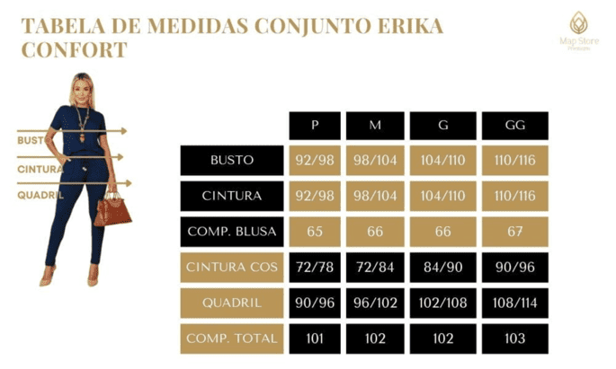 O conjunto confort Erica traduz conforto e elegância em uma única peça. Totalmente único ele é composto de uma t-shirts de manga curta com uma calça reta e com bolsos chapados, cós anatômico com elástico grosso somente para segurar a barriguinha se houver , dando mais segurança ao vestir. A calça vem com shorts de forro para não marcar o quadril e nem as imperfeições do corpo. Simplicidade e sofisticação é tudo que o conjunto de calça e blusa confortável Erika traduz. Aerolook é a trend do momento com cenário atual no mundo,aquele look que você está confortável e basta um acessório e você está pronta para sair. Guarda roupas inteligentes começa com peças chaves como o conjunto confort Erika que é forte candidato para você mulher despojada que gosta de se arrumar em um piscar de olhos. Versatilidade, conforto e elegância em um look totalmente atemporal . Use o ano inteiro , sinta o conforto das nossas peças. A Modelagem dele vem bem certinha ao corpo feito na viscolycra premium, a calça tem elástico de 8 cm com costuras reforçadas para não ficar virando e dobrando, sustentando a barriguinha se houver, a calça também tem forro do mesmo tecido no estilo shortinhos para dar mais conforto ao vestir. Composto por t-shirts com fino acabamento e calça estilo reta e bolsos chapados. Ele vem em tamanhos P M G GG vestindo mulheres do 38 ao 48 com graça e conforto.